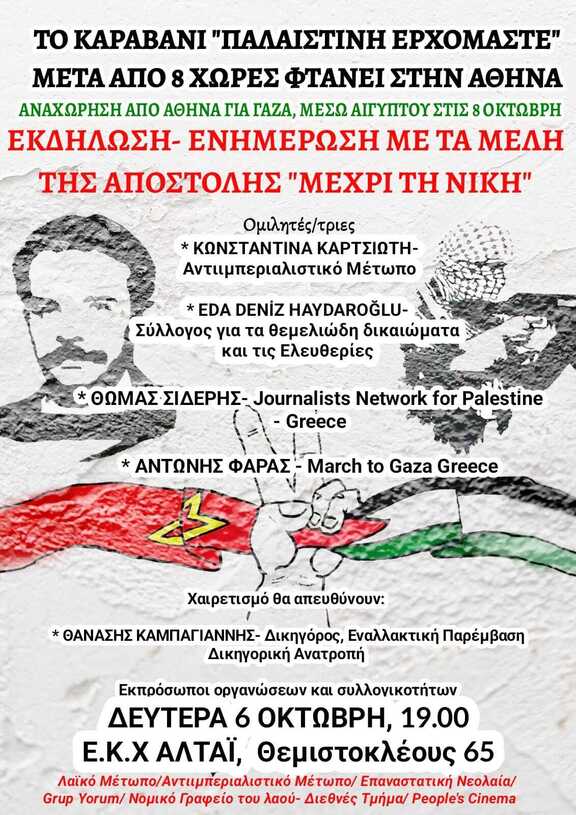 🇵🇸 🚩 ΤΟ "ΚΑΡΑΒΑΝΙ ΠΑΛΑΙΣΤΙΝΗ ΕΡΧΟΜΑΣΤΕ" ΚΑΙ Η "ΑΠΟΣΤΟΛΗ ΜΕΧΡΙ ΤΗ ΝΙΚΗ" ΜΕΤΑ ΑΠΟ 8 ΧΩΡΕΣ ΦΤΑΝΕΙ ΣΤΗΝ ΑΘΗΝΑ