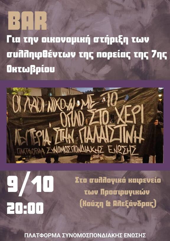 [GR] Bar για την οικονομική ενίσχυση των συλληφθέντων της πορείας της 7ης Οκτώβρη