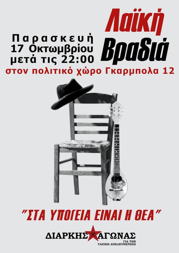 Λαϊκή βραδιά οικονομικής ενίσχυσης του Διαρκούς Αγώνα για την Ταξική Απελευθέρωση.