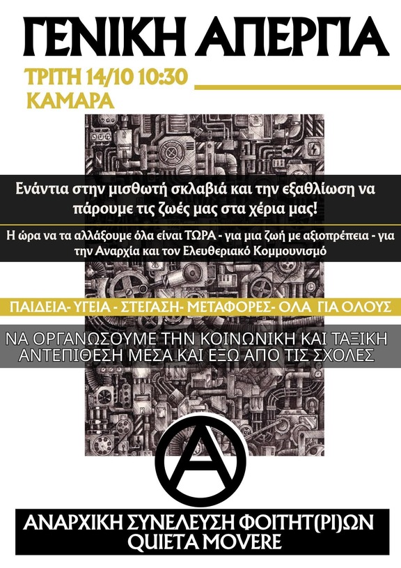 Αγωνιστικές Κινήσεις | 14/10, Όλοι στην απεργία! Κοινός αγώνας φοιτητών και εργαζομένων για σπουδές, δουλειά με δικαιώματα