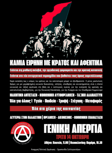 Γενική απεργία 14 Οκτώβρη | Καμιά ειρήνη με κράτος και αφεντικά | απεργιακές κινητοποιήσεις σε Αθήνα & Θεσσαλονίκη