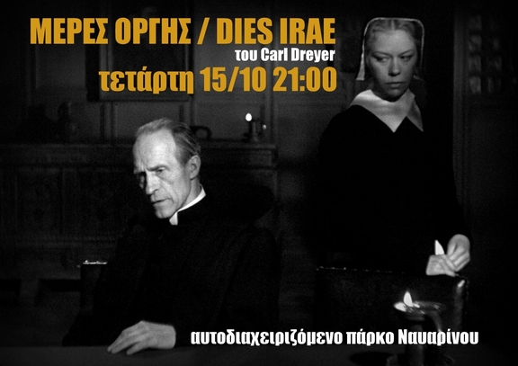 Με το αριστούργημα του Carl Dreyer DIES IRAE (1943) γνωστού στην Ελλάδα με τον τίτλο ΜΕΡΕΣ ΟΡΓΗΣ κλείνουμε τον κύκλο των προβολών αυτή την Τετάρτη 15/10 στις 21:00 στο πάρκο Ναυαρίνου.