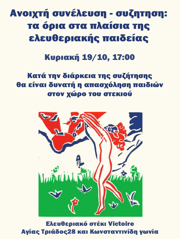 Ανοιχτή συνέλευση - συζήτηση για τα όρια στην ελευθεριακή εκπαίδευση - Κυριακή 19/10 στις 17:00 στο Ελευθεριακό Στέκι Victoire