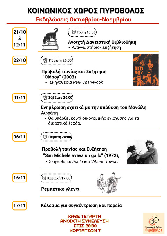 Άνοιγμα της βιβλιοθήκης του Κ.Χ. Πυρόβολος. Ελάτε για συζήτηση, διάβασμα ή για δανεισμό κάποιου βιβλίου.