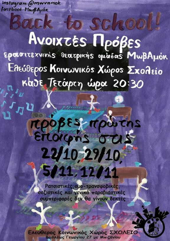 Πρώτη ανοιχτή πρόβα θεατρικής ομάδας ΜωβΑμόκ στον Ελεύθερο Κοινωνικό Χώρο Σχολείο