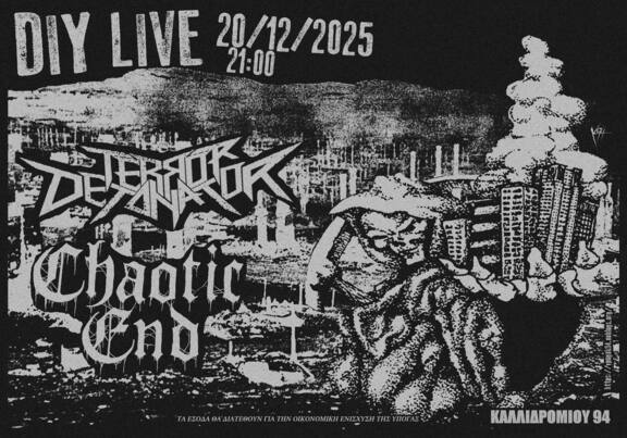 Τελευταίο λάιβ της χρονιάς, το Σάββατο 20.12 με Chaotic End και Terror Detonator από Αθήνα. Θα αρχίσει και θα τελειώσει νωρίς !