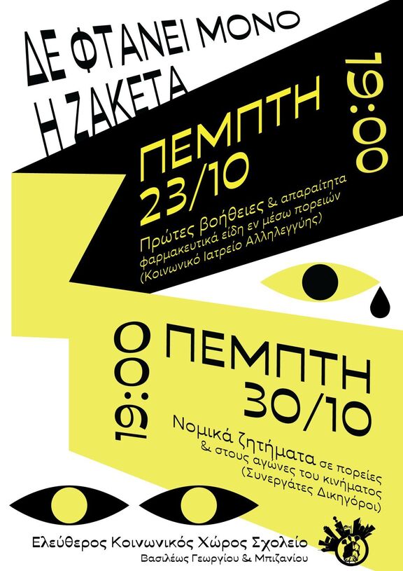 Ενημέρωση για νομικά ζητήματα σε πορείες & στους αγώνες του κινήματος με συνεργάτες δικηγόρους στον Ελεύθερο Κοινωνικό Χώρο Σχολείο