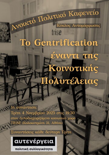 Πολιτικά Καφενεία - 1η Συνάντηση: “Gentrification έναντι Κοινοτικής Πολυτέλειας”