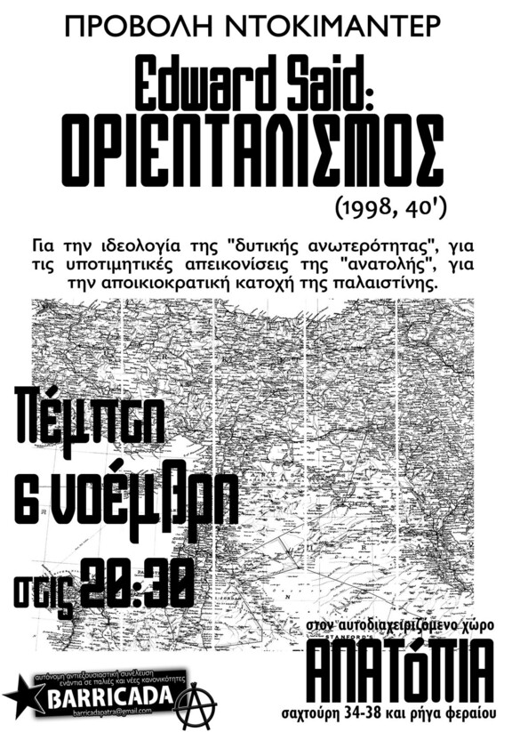 Προβολή ντοκιμαντέρ / «Edward Said: Οριενταλισμός»