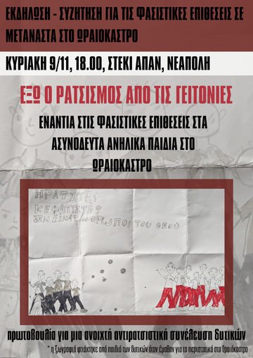 Εκδηλωση για τις φασιστικες επιθεσεις σε μεταναστακια στο Ωραιοκαστρο