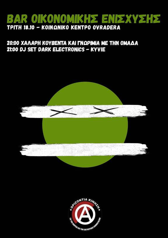 Τρίτη 18/11, από τις 20:00 στο Κοινωνικό Κέντρο Ovradera: Xαλαρή κουβέντα γνωριμίας με την ομάδα Οριζόντια Κίνηση - Για την Αναρχία και τον Ελευθεριακό Κομμουνισμό