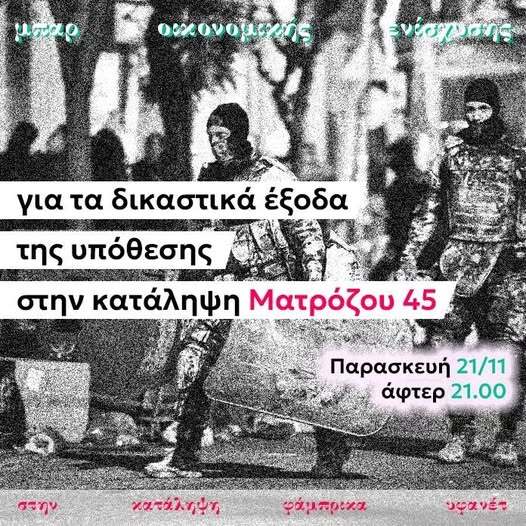 Μπαρ οικονομικής ενίσχυσης για τα δικαστικά έξοδα των καταληψιών της Ματρόζου