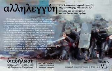 Όσο μεγάλη και να είναι η καταστολή και όσο μεγάλα κι αν είναι τα επιχειρηματικά σχέδια πλουτισμού εις βάρος της κοινωνίας, η αλληλεγγύη μας είναι μεγαλύτερη.