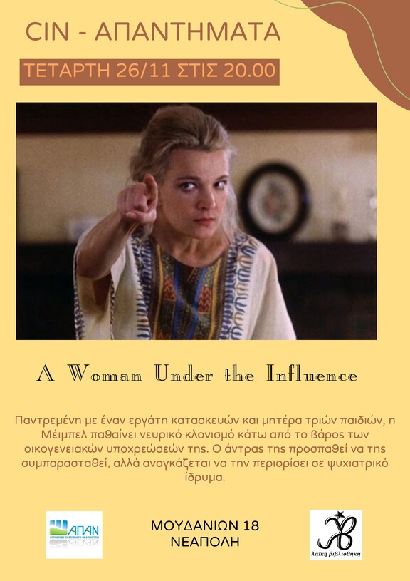 Την Τετάρτη 26/11 στις 20.00 η προβολή της ταινίας "A Woman Under the Influence" του John Cassavetes.