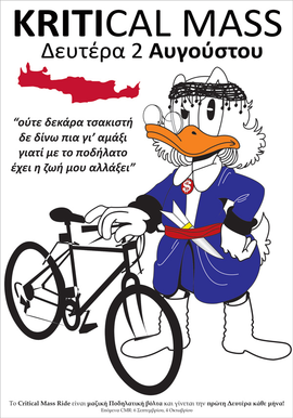 Η ιδέα του critical mass είναι μία μαζική βόλτα με ποδήλατα, ξεκινώντας από ένα προκαθορισμένο σημείο εκκίνησης κάθε μήνα, μια συγκεκριμένη μέρα. Σίγουρα ο σκοπός δεν είναι η ταχύτητα σε μια τέτοια βόλτα, αλλά κυρίως η προβολή του ποδηλάτου. Είναι μια γιορτή για το ποδήλατο στους δρόμους! Το CMR δεν προσπαθεί να εναντιωθεί στα αυτοκίνητα, τα λεωφορεία ή τα υπόλοιπα οχήματα που κινούνται, απλά παίρνει το μερίδιό του στο οδόστρωμα από όπου περνάει. Το critical mass ride είναι μια προσπάθεια διεκδίκησης του δικαιώματός μας να χρησιμοποιούμε το δρόμο, αλλά όχι η στέρησή του στους άλλους!