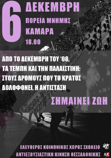 Αγωνιστικές Κινήσεις - Θεσσαλονίκη: Όλοι/ες στην πορεία Σάββατο 6 Δεκέμβρη, 6:00μμ, στην Καμάρα