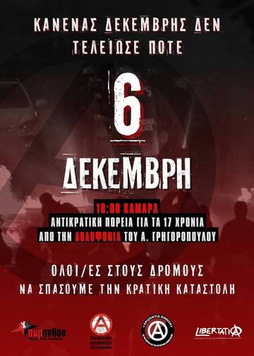 6 Δεκέμβρη 2008 - 6 Δεκέμβρη 2025 | Για το πέρασμα από την αυθόρμητη εξέγερση στον συνεχή και οργανωμένο αγώνα για την Κοινωνική Επανάσταση την Αναρχία και τον Ελευθεριακό Κομμουνισμό