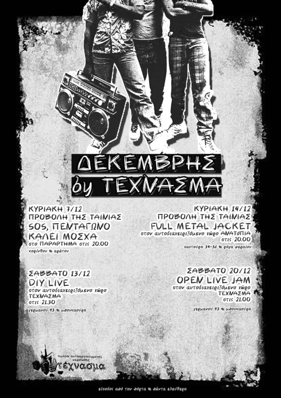 σάββατο 13 δεκέμβρη στις 21.30: DIY LIVE στον αυτοδιαχειριζόμενο χώρο Τέχνασμα