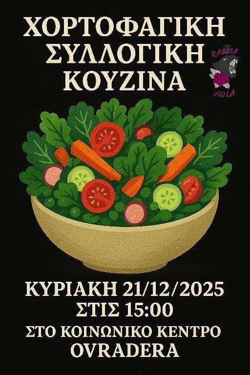 Την Κυριακή 21/12 τρώμε όλες όλοι όλα μαζί στην συλλογική χορτοφαγική κουζίνα.