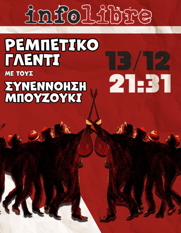 Ρεμπέτικο Γλέντι οικονομικής ενίσχυσης του Infolibre. Με τους "Συνεννόηση Μπουζούκι" Σάββατο 13/12