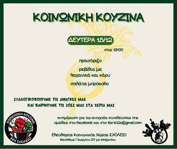 Κοινωνική κουζίνα στον Ελεύθερο Κοινωνικό Χώρο Σχολείο