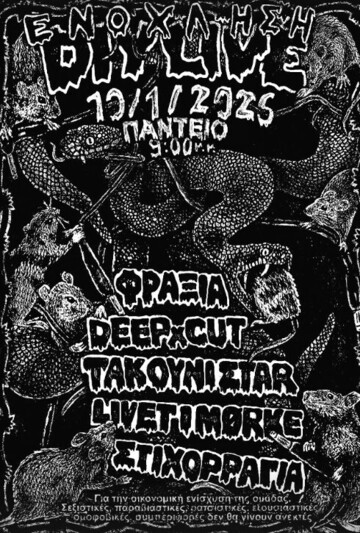 Το Σάββατο 10/1/2026, θα πραγματοποιηθεί live για το άνοιγμα της αυτοοργανωμένης ομάδας ΕΝΟΧΛΗΣΗ, στο Παντειο.