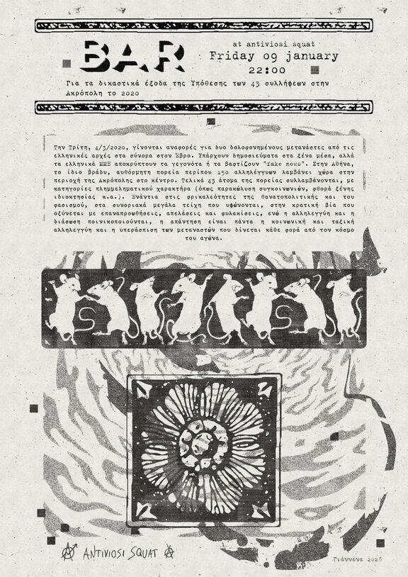 Μπαρ αλληλεγγύης στα 43 συλληφθέντα της Ακρόπολης