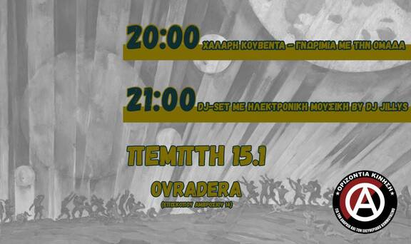 Πέμπτη 15/1, στο Κοινωνικό Κέντρο Ovradera