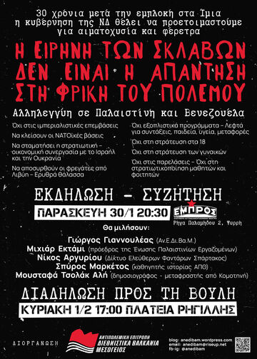 Η αντιπολεμική - διεθνιστική διαδήλωση θα γίνει! Κυριακή 1 Φεβρουαρίου στις 5μμ στα Προπύλαια.