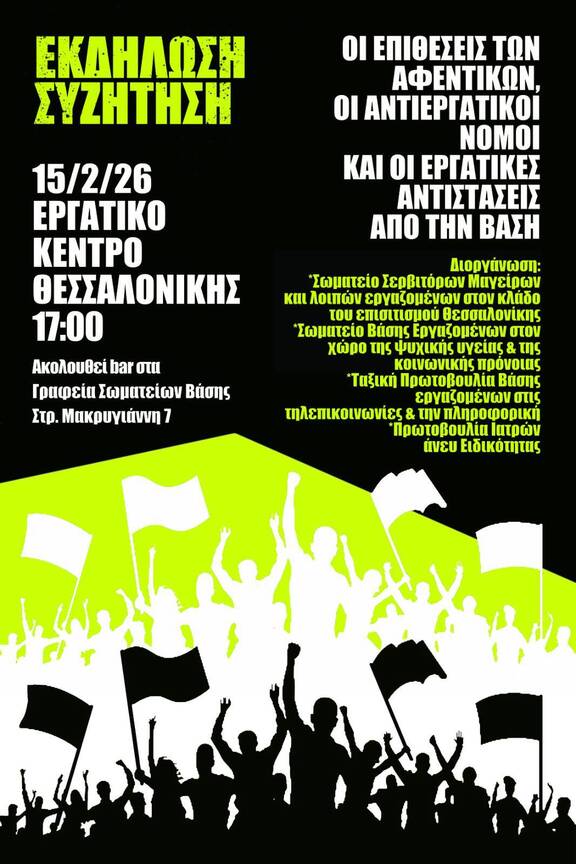 15/2/26, 17:00, Εργατικό Κέντρο Θεσσαλονίκης