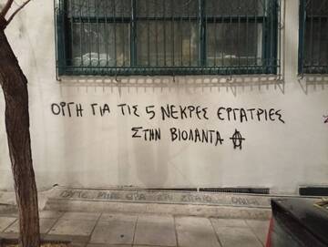 Τα χαράματα της Δευτέρας 26/01 συνέβη έκρηξη και φωτιά στο εργοστάσιο βιομηχανίας "Βιολάντα" με 5 νεκρές εργάτριες και οκτώ τραυματίες. Αυτή η δολοφονική ενέργεια δε μπορεί παρά να μας προκαλέσει οργή. Εκατοντάδες εργατικές δολοφονίες κι ατυχήματα συμβαίνουν στην Ελλάδα ετησίως, εκ των οποίων πολλά μένουν στην αφάνεια ή αποσιωπούνται καθώς στο ανθρωποφαγικο σύστημα του καπιταλισμού η εργασιακή εξαθλίωση είναι μια κανονικότητα. Εργοδοτικές αυθαιρεσίες, ελλειπή ή καθόλου μέτρα προστασίας, μόνιμη ανασφάλεια, για να έχουν τα αφεντικά όσο περισσότερα κέρδη μπορούν, φυσικά στις δίκες μας πλάτες. Την ίδια στιγμή η κυβέρνηση ψηφίζει αντεργατικά νομοσχέδια (13ωρη εργασια) και εντείνει τη καταστολή ποινικοποιώντας τις απεργίες εργαζομένων.