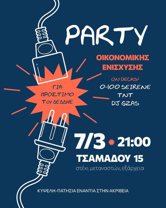 Party οικονομικής ενίσχυσης για την γειτόνισσα μας στα Πατήσια, Α.Σ, μονογονέα και μητέρα 4 παιδιών, που αντιμετωπίζει ψευδείς κατηγορίες για ρευματοκλοπή από τον ΔΕΔΔΗΕ.
