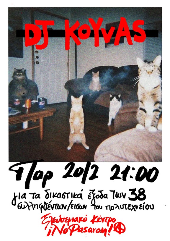 Dj set: Kouvas για τα δικαστικά έξοδα των 38 συλληφθεντων/φθεισων του Πολυτεχνείου στο ελευθεριακό κέντρο "No pasaran"