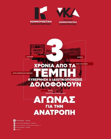 Ανακοίνωση Κομμουνιστική Απελευθέρωση & νεολαία Κομμουνιστική Απελευθέρωση-νΚΑ (οργανώσεις της ΑΝΤΑΡΣΥΑ) για την 3η επέτειο του εγκλήματος των Τεμπών