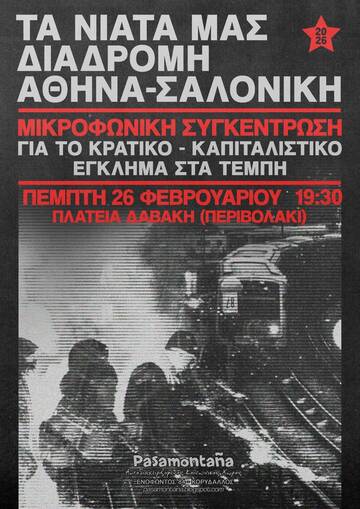 Εκδήλωση- συζήτηση για το κρατικό- καπιταλιστικό έγκλημα στα Τέμπη, με τη συμμετοχή του αγωνιστή και συγγενή θύματος, Πάνου Ρούτσι - Παρασκευή 20.2 στις 19.00, Καλλιδρομίου 49. "Η συνέχεια του κρατικού- καπιταλιστικού εγκλήματος των Τεμπών και της συγκάλυψής του μέσα στις δικαστικές αίθουσες -Το καθήκον της όξυνσης του ταξικού πολέμου για το εγχώριο επαναστατικό κίνημα" | ΟΛΟΙ ΚΑΙ ΟΛΕΣ ΣΤΗ ΔΙΑΔΗΛΩΣΗ ΣΑΒΒΑΤΟ 28 ΦΕΒΡΟΥΑΡΙΟΥ ΣΥΝΤΑΓΜΑ 12ΜΜ
