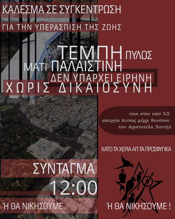 - Λευτεριά στη Παλαιστίνη. Όχι ελληνικός στρατός στη Γάζα. Διακοπή κάθε σχέσης με το κράτος του Ισραήλ.