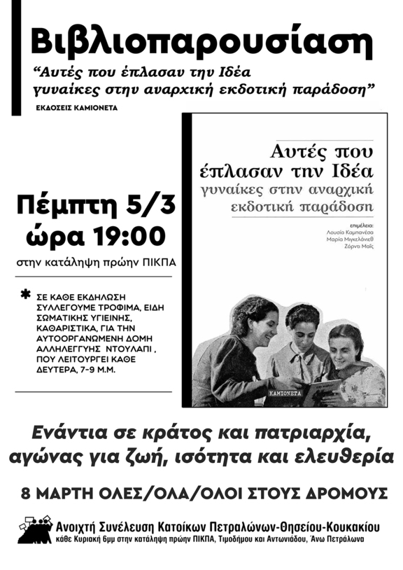 Βιβλιοπαρουσίαση "Αυτές που έπλασαν την Ιδέα" | Πέμπτη 5 Μαρτίου | κατάληψη πρώην ΠΙΚΠΑ | 7μμ