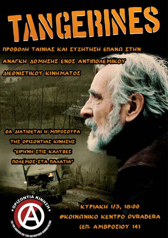 Προβολή της ταινίας Tangerines (2013) και κουβέντα επάνω στο αντιπολεμικό ζήτημα και την ανάγκη δόμησης ενός αντιπολεμικού, διεθνιστικού κινήματος