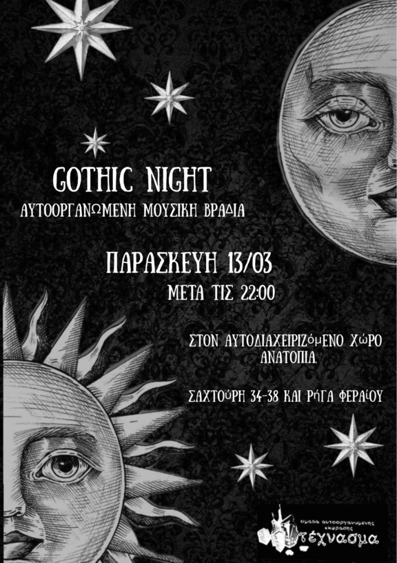 παρασκευή 13 μάρτη στις 22.00: Gothic Night στον αυτοδιαχειριζόμενο χώρο ΑΝΑΤόΠΙΑ.