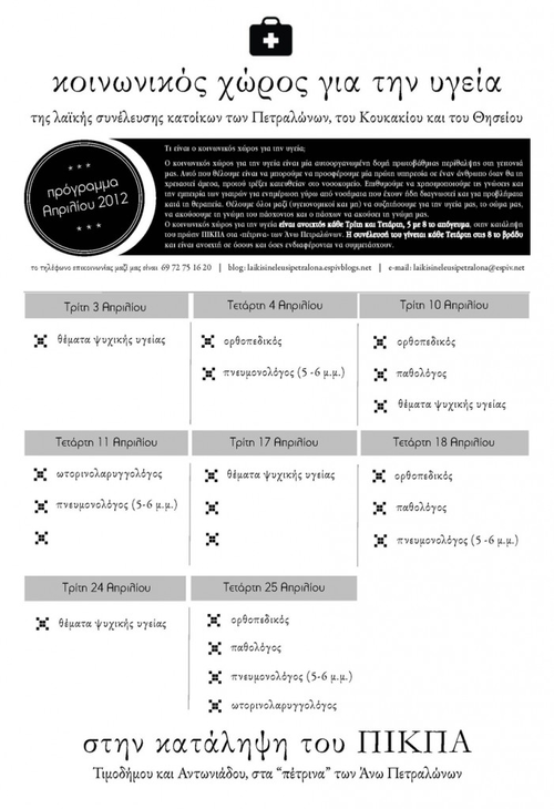 Πρόγραμμα Απριλίου του κοινωνικού χώρου για την υγεία.