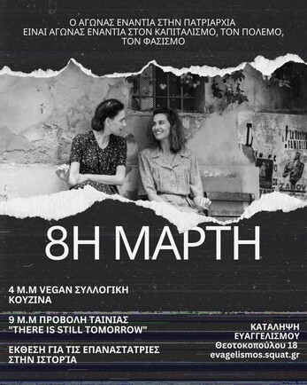 8 Μάρτη : 16:00-Vegan συλλογική κουζίνα & 21:00-Προβολή"There Is Still Tomorrow"