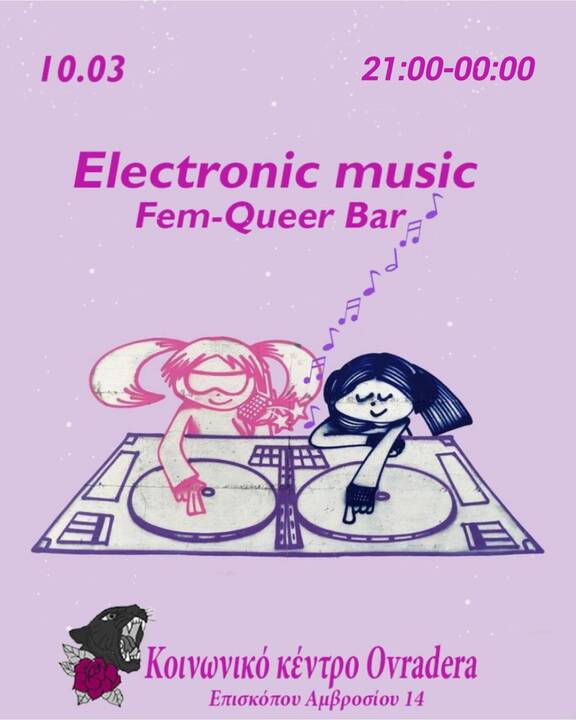 Fem-Queer bar με ηλεκτρονική μουσική στο κοινωνικό κέντρο Ovradera από την συλλογικότητα για τον ελευθεριακό φεμινισμό Rabbia Viola