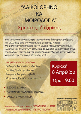 Συναυλία - Χρήστος Τζιτζιμίκας "Λαϊκοί Θρήνοι και Μοιρολόγια", Κυριακή 8 Απρ