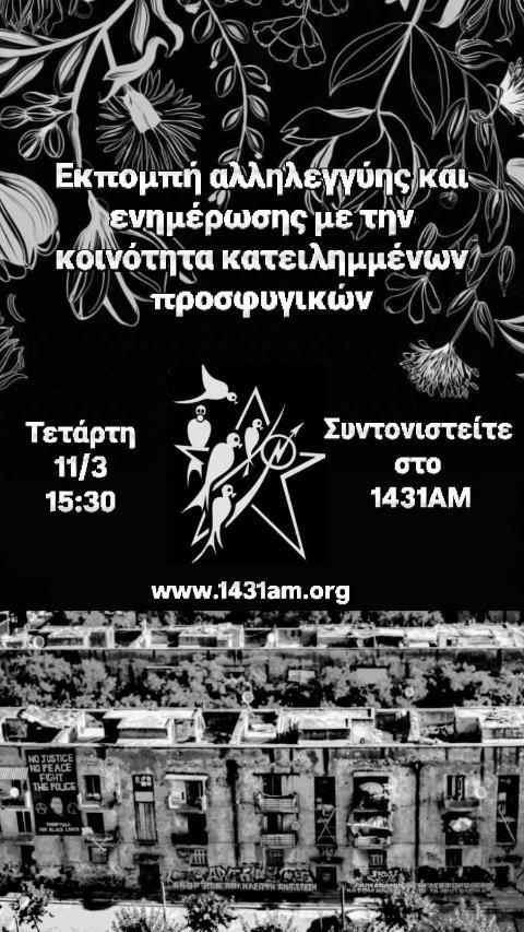 Αύριο το μεσημέρι στις 15.30 έχουμε εκπομπή με την κοινότητα κατειλημμένων προσφυγικών! Συντονιστειτε να ακούσετε για την ιστορία της κατειλημμένης γειτονιάς, τις δομές που φιλοξενεί και να ενημερωθείτε για τα σχέδια της περιφέρειας Αττικής να καταστείλει τους αγώνες της κοινότητας με το πρόσχημα της ανάπλασης και φυσικά για τον αγώνα αντίστασης στα σχέδια αυτά.