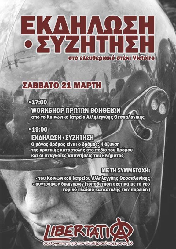 Εκδήλωση/συζήτηση - Ο μόνος δρόμος είναι ο δρόμος: Η όξυνση της κρατικής καταστολής στο πεδίο του δρόμου και οι αναγκαίες απαντήσεις του κινήματος