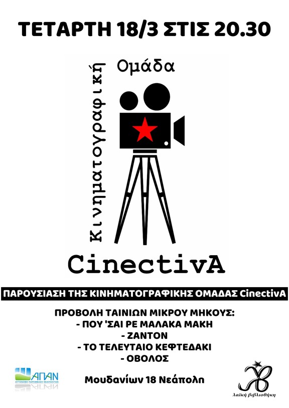 Παρουσίαση κιν/φικης ομάδας CinectivA και προβολή ταινιών μικρού μήκους