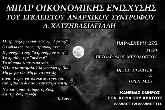 Μπαρ οικονομικής ενίσχυσης για τον αναρχικό σύντροφο Δ. Χατζηβασιλειάδη