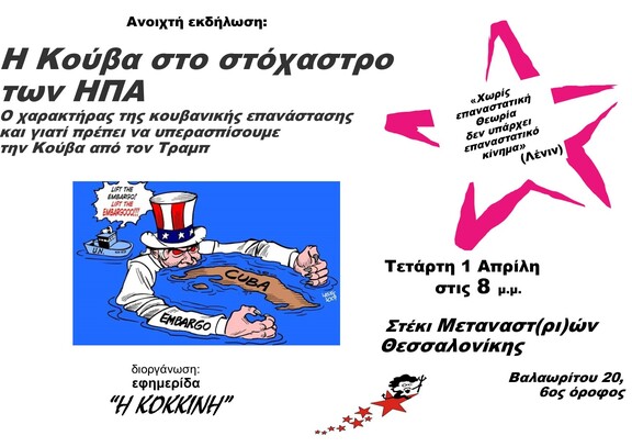 Απέναντι στον στραγγαλισμό της Κούβας από τον ιμπεριαλισμό των ΗΠΑ, είμαστε ξεκάθαρα με την Κούβα απέναντι στους Γιάνκηδες.