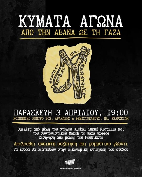 Ομιλίες από μέλη του Global Sumud Flotilla και του συντονιστικού March to Gaza Greece