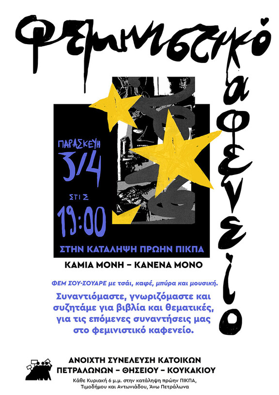 Φεμινιστικό καφενείο στην κατάληψη πρώην ΠΙΚΠΑ την Παρασκευή 3 Απρίλη και ώρα 19:00!